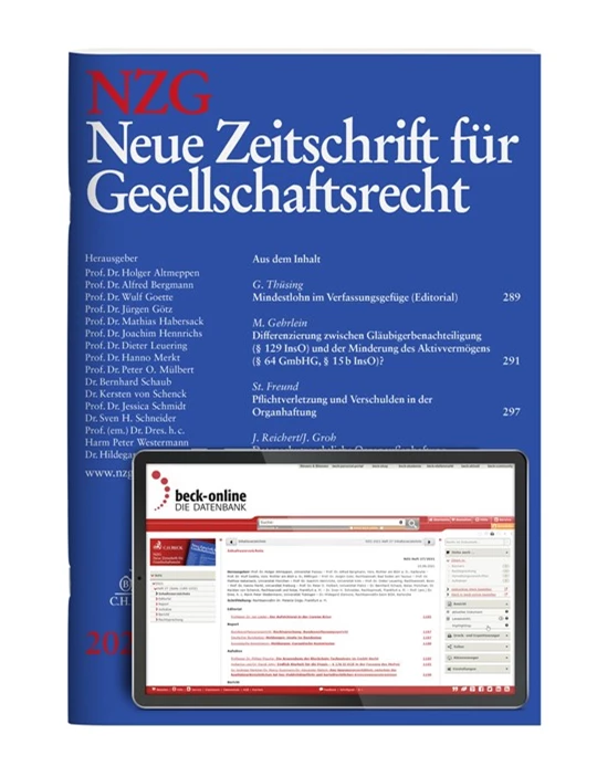 | | | |  | NZG • Neue Zeitschrift für Gesellschaftsrecht |  | Wie nachhaltig ist die Verrechtlichung der Nachhaltigkeit? Diese Frage mag man sich stellen, angesichts der gegenläufigen Agenda der US-Administration, der im deutschen Koalitionsvertrag vereinbarten Abschaffung des deutschen LkSG und der »Stop the clock«-Intervention des europäischen Gesetzgebers zur CSRD und CSDDD. Die NZG – Neue Zeitschrift für Gesellschaftsrecht widmet sich dieser Frage mit fundierten Beiträgen namhafter Autorinnen und Autoren aus Wissenschaft und Praxis. Die Fachzeitschrift ist in beck-online Bestandteil der Fachmodule Handels- und Gesellschaftsrecht PLUS, PREMIUM und OPTIMUM; Notarrecht PLUS, PREMIUM und OPTIMUM sowie Steuerberater OPTIMUM.