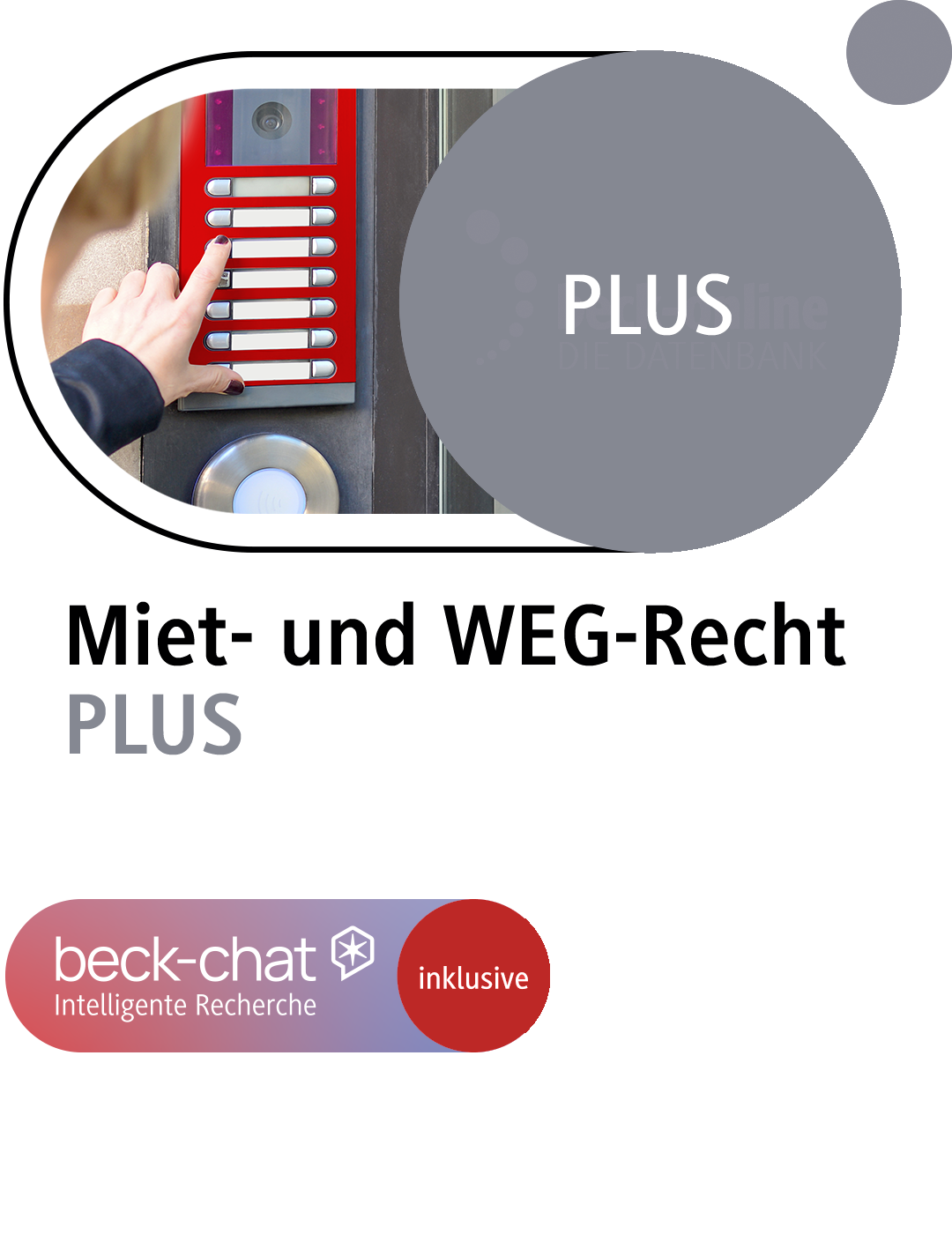 | |  | | | | |  | | Miet- und WEG-Recht PLUS |  | bietet Ihnen stets die neuesten Gesetze und Entscheidungen sowie renommierte Kommentare zum Miet- und WEG-Recht wie etwa